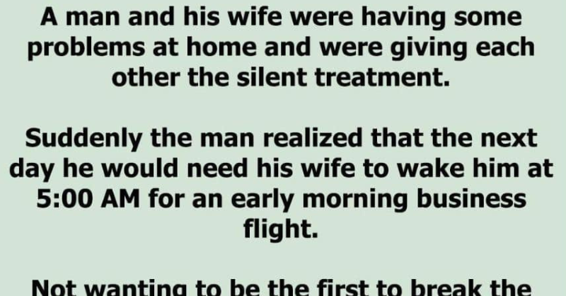 A couple was experiencing difficulties in their relationship and had chosen to communicate with each other through silence ( silent treatment therapy). All of a sudden, the man...