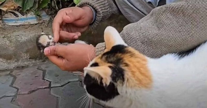 Mama cat places her dying kitten in man’s hands, receives a response she will never forget