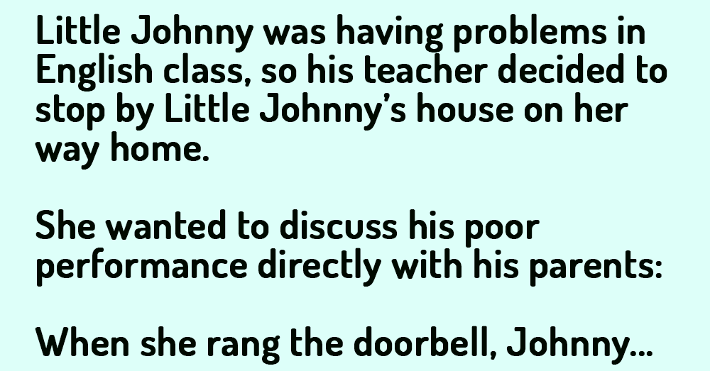 Little Johnny was having problems in English class, so his teacher decided to stop by Little Johnny’s house on her way home. She wanted to discuss his poor...