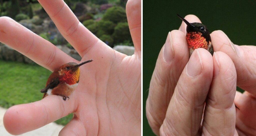 They’re bee hummingbirds, which lives along the West Coast of the U.S., including Alaska in the summer. The bee hummingbird is a bit smaller, has no rufous color...
