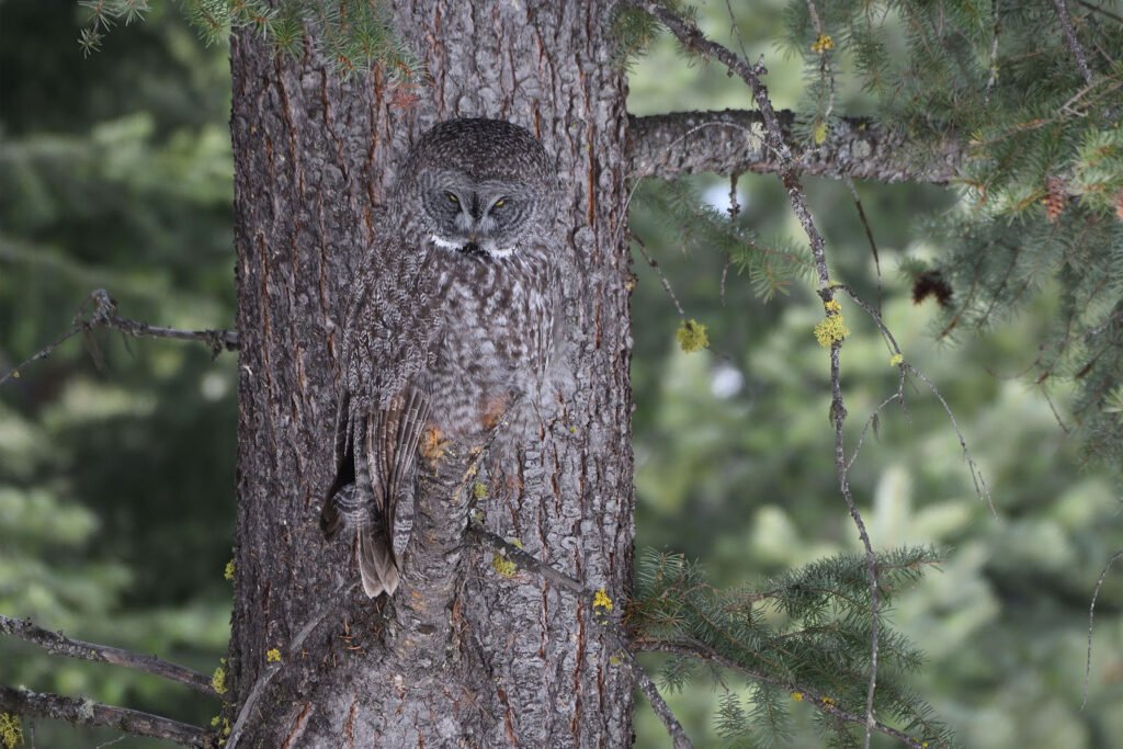 Photographer Spots Stunning Great Grey Owl Blending Perfectly Into a Tree